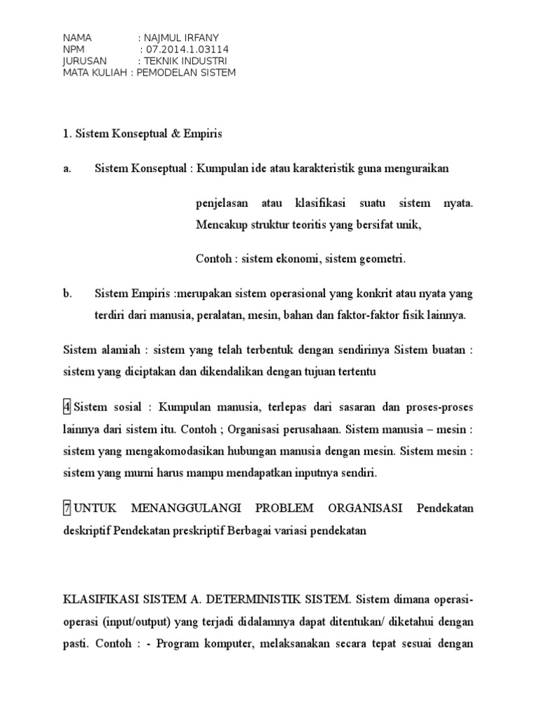 Konsep Dasar Sistem Karakteristik Dan Klasifikasi Sistem Edotriadanu