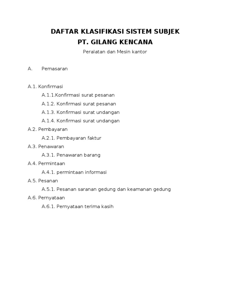 Contoh Daftar Klasifikasi Filing Sistem Masalah Subjek Brainly Co Id