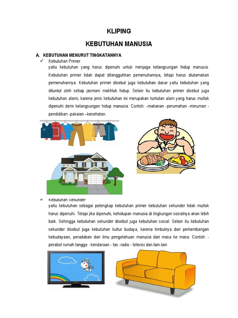 Macam Macam Kebutuhan Manusia Dan Contohnya Berpendidikan Com