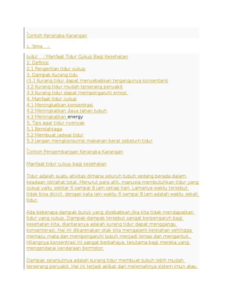 Contoh Kerangka Karangan Tentang Kesehatan Contoh Resource