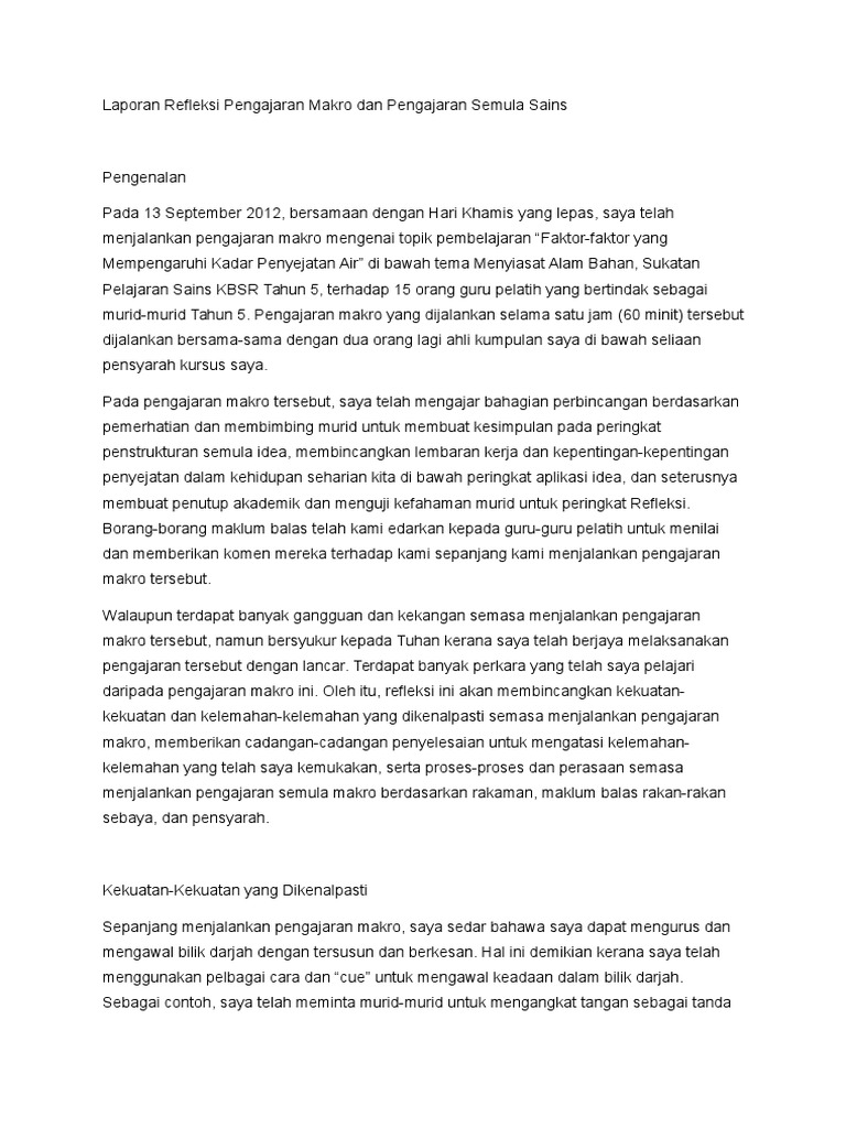 Laporan Refleksi Pengajaran Makro Dan Pengajaran Semula Sains