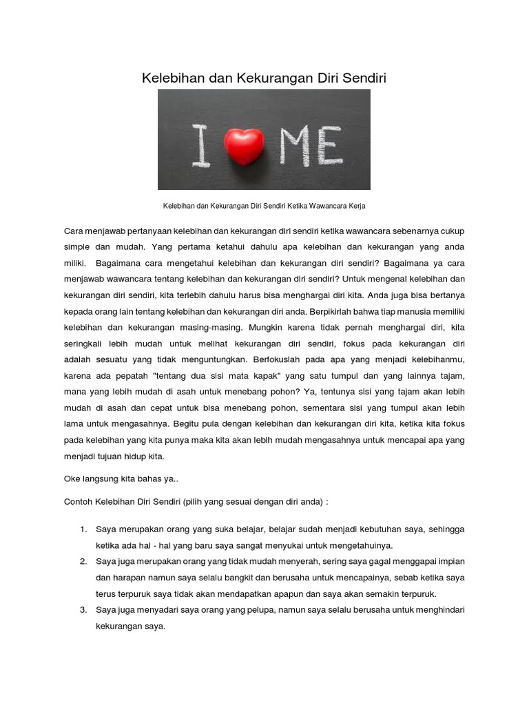 Doc Kelebihan Dan Kekurangan Diri Zigit Toro Academia Edu