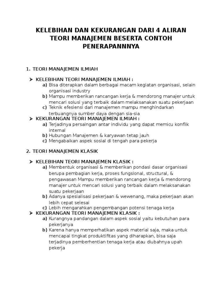 Kelebihan Dan Kekurangan Dari 4 Aliran Teori Manajemen Beserta Contoh Penerapannnya