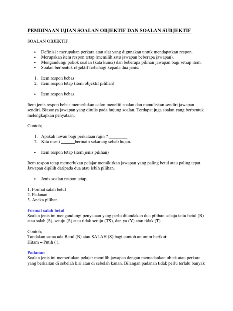 Contoh Kata Objektif Contoh Soal Dan Materi Pelajaran 7