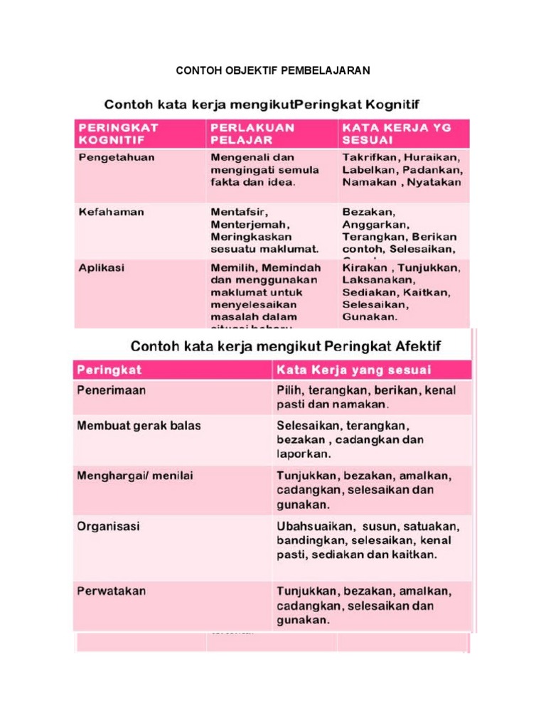 Taksonomi Objektif Pendidikan Dan Contoh Kata Soal Pdf Document