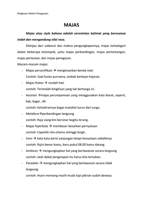 58 Macam Macam Majas Beserta Contoh Dan Penjelasannya Lengkap